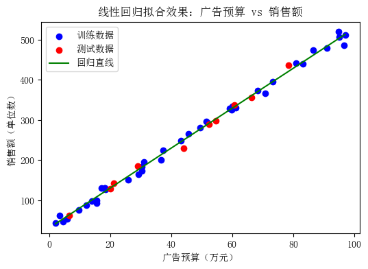 - 绘制回归拟合直线,直观展示模型效果。