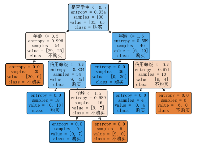 - 包含用户年龄、收入、是否学生、信用等级和是否购买的分类特征